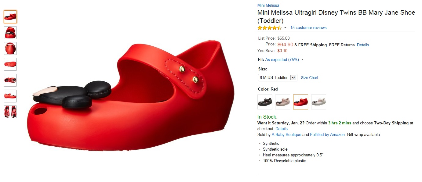 Mini Melissa Ultragirl Disney Twins BB Mary Jane Shoe (Toddler)