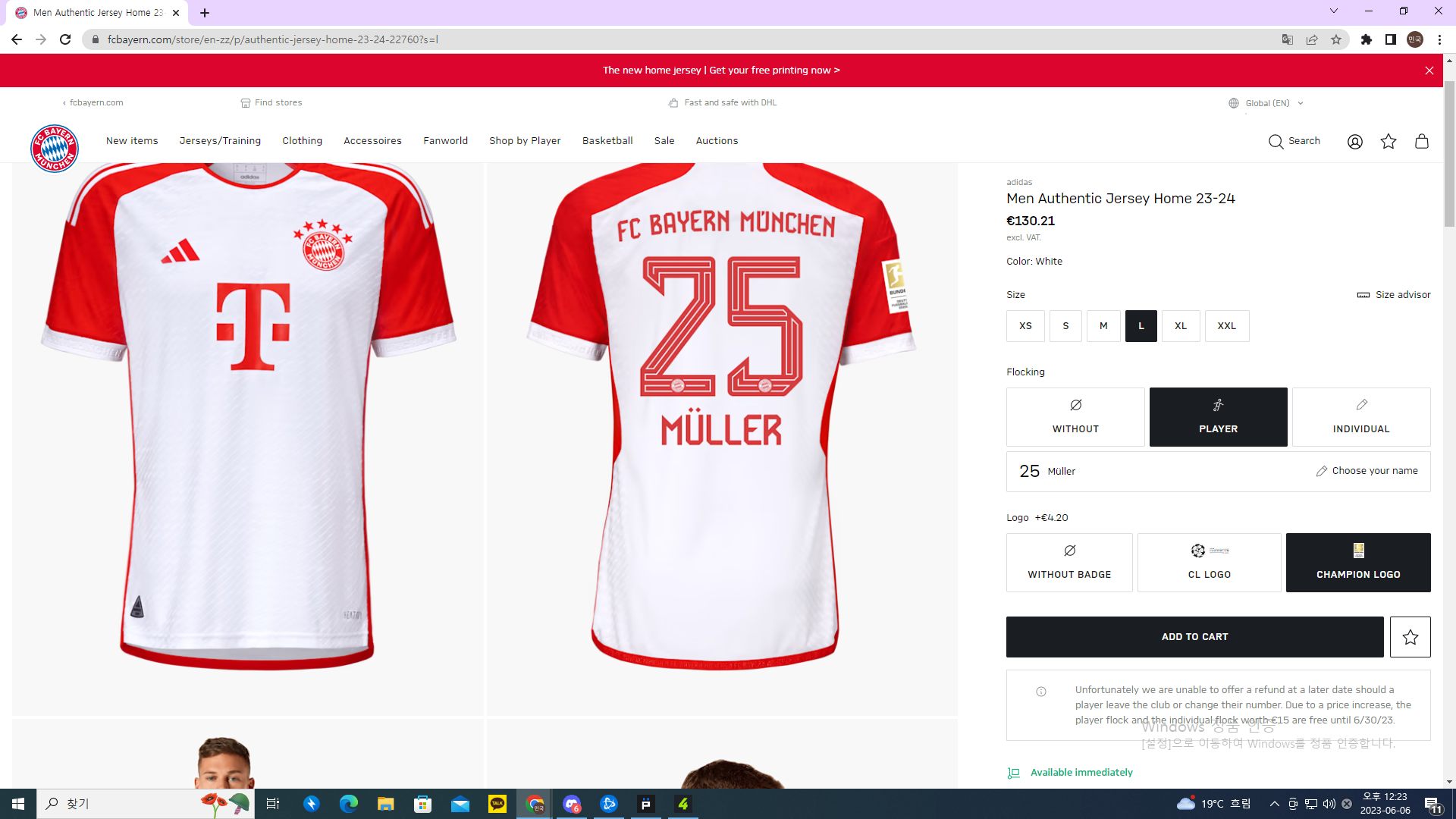 Men Authentic Jersey Home 23-24 사이즈는 L 플레이어 마킹은 뮐러 로고는 챔피언 로고입니다 첨부파일 참조 |