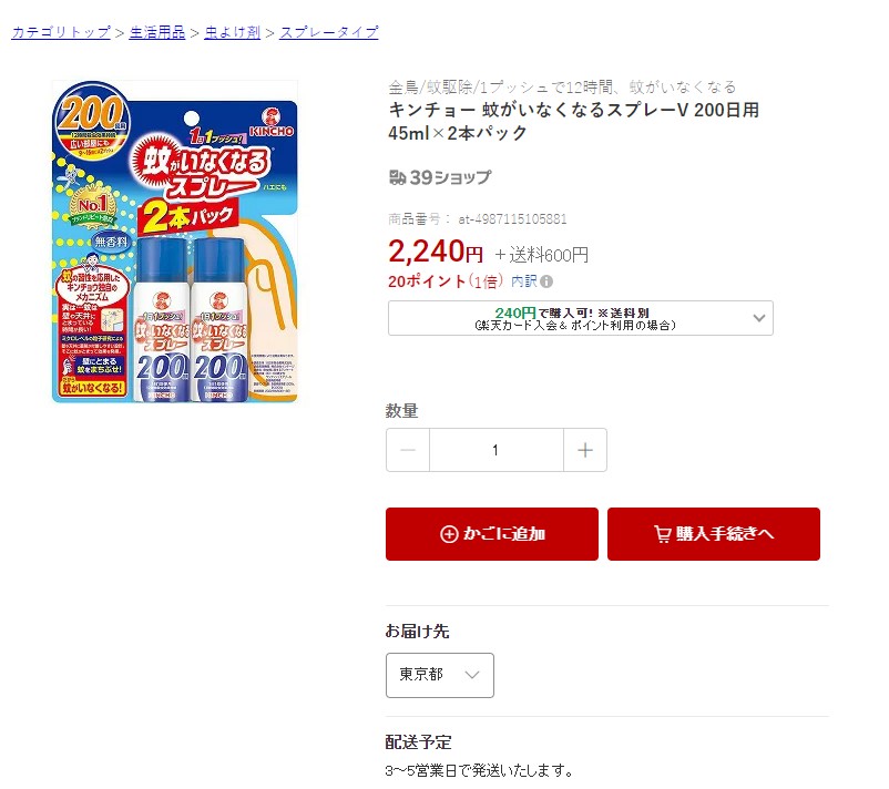 キンチョー 蚊がいなくなるスプレーV 200日用 45ml×2本パック