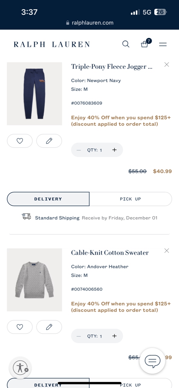 현재 폴로 공홈에서 125불 이상 장바구니 40% 할인, 무료배송으로 200불 내 구매하고 싶습니다.
