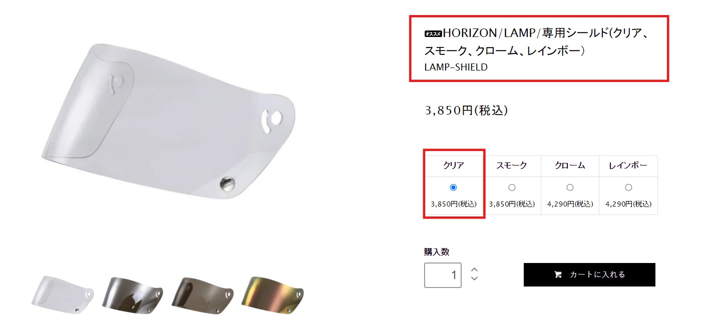HORIZON/LAMP/専用シールド(クリア、スモーク、クローム、レインボー) LAMP-SHIELD