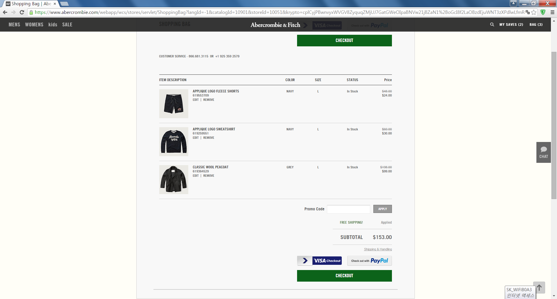 Applique Logo Fleece Shorts APPLIQUE LOGO FLEECE SHORTS 619553709 EDIT REMOVE NAVY L In Stock $48.00 $24.00 Applique Logo Sweatshirt APPLIQUE LOGO SWEATSHIRT 619259551 EDIT REMOVE NAVY L In Stock $60.00 $30.00 Classic Wool Peacoat CLASSIC WOOL PEACOAT 619364529 EDIT REMOVE GREY L In Stock $198.00 $99.00 Promo Code APPLY FREE SHIPPING! Applied SUBTOTAL $153.00 할인코드 적용해주세요. Shipping & Handling |
