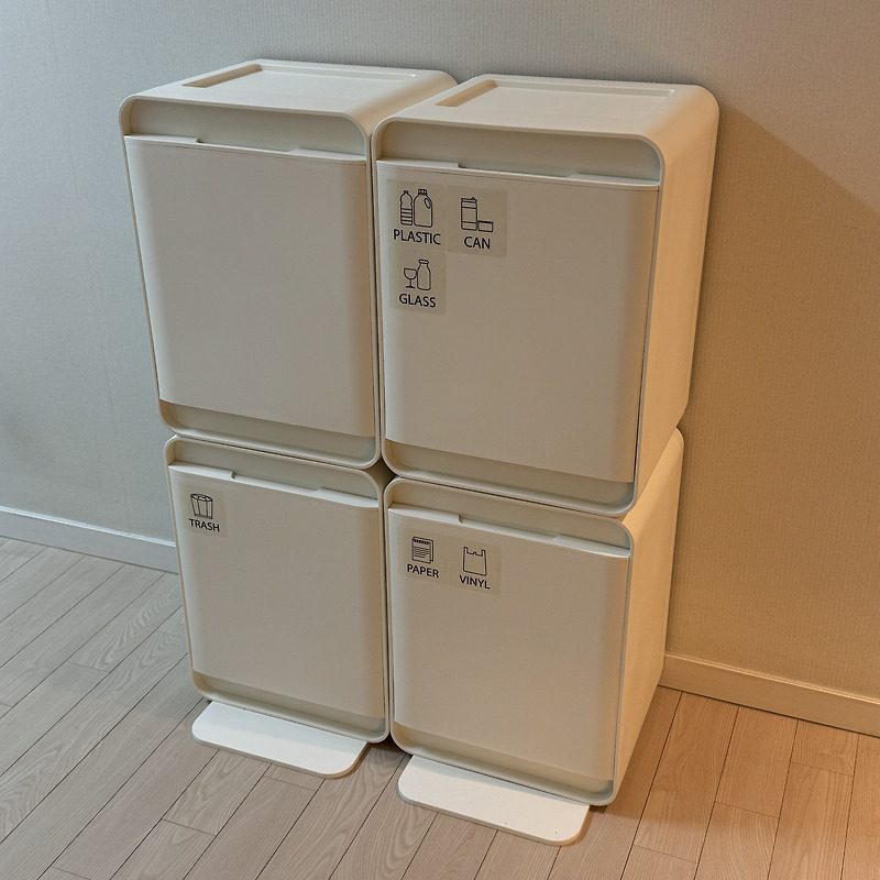 내부에는 대용량 쓰레기통 두 개가 쏙 들어갈 만큼 넉넉한 공간이 마련되어 있어서 분리수거함으로... 분리수거함으로 쓰다 보면 내부에 오염이 생길 수 있는데, 플라스틱 통을 별도로 사용하거나 비닐을...