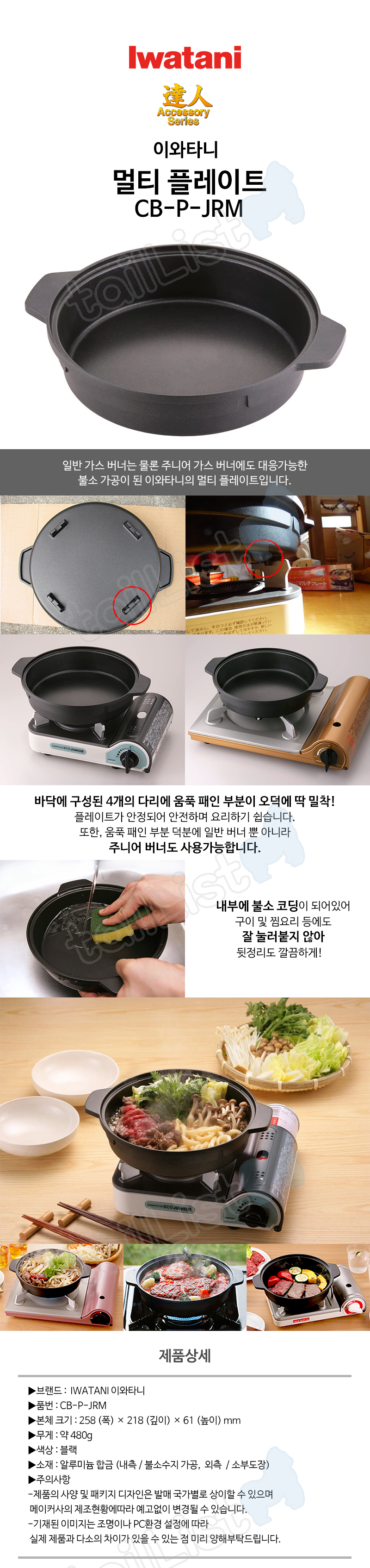 정품 Iwatani 분리형 구조로 세척과 보관 편리 다양한 요리에 대응하는 양면 구조 콘로 전용 안전설계 제품 정보 요약 항목 내용 모델명 CB-P-HSG 크기 141×354×50mm 무게 약 570g 재질 알루미늄 합금(불소코...