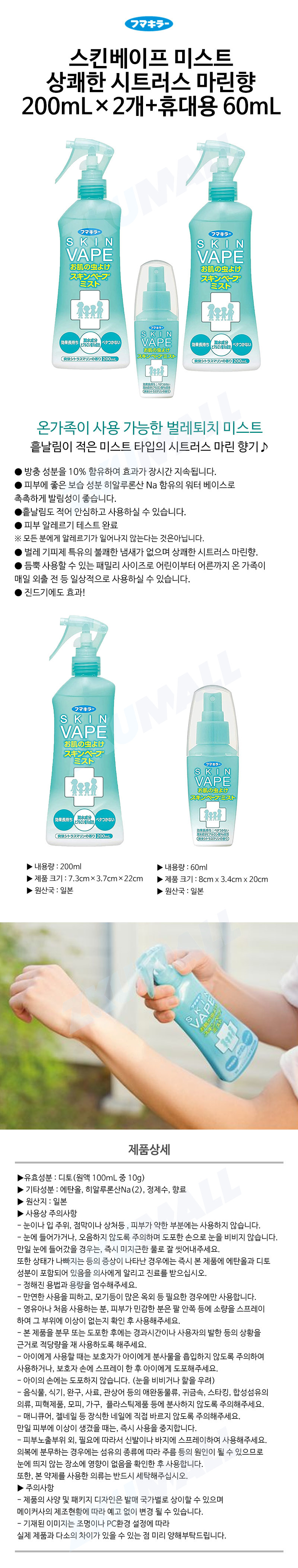 :) ■ 일본 후마키라 벌레퇴치 모기퇴치 스프레이 스킨 베이프 미스트 200ml, 1개... :) ■ Skin Vape 스킨 베이프 천사 모기 벌레 퇴치 스프레이 미스트 타입 시트러스 마린향 7.8Fl.oz(200ml) 2팩, 2개, 200ml...