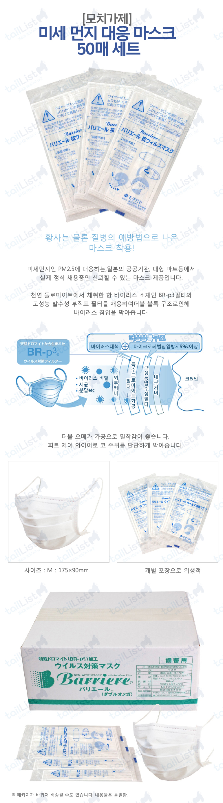 모치가제에서 개발한 유명한 마스크, 바리에르 초미세먼지 차단 마스크입니다. 미세먼지가 나날이 심각해지고 있습니다. 그래서인지 마스크 판매량도 나날이 늘고 있습니다. ( i _ i ) 언제쯤이면...