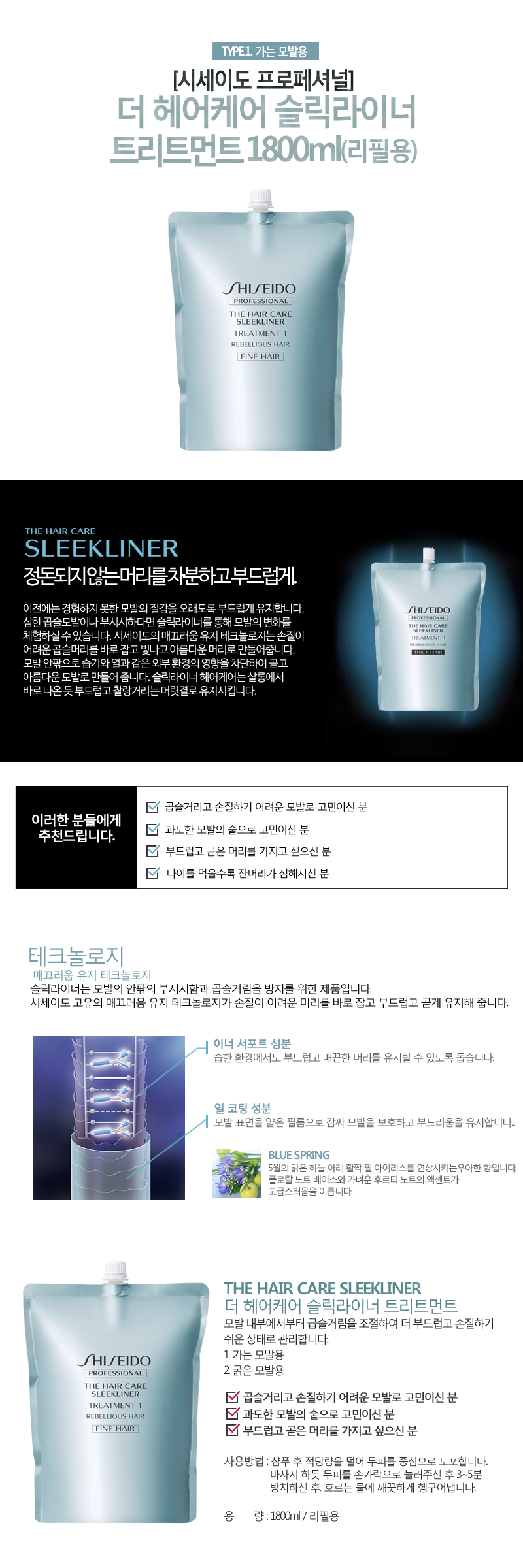 상품명[시세이도] 더 헤어케어 슬릭라이너 트리트먼트1- 1800ml