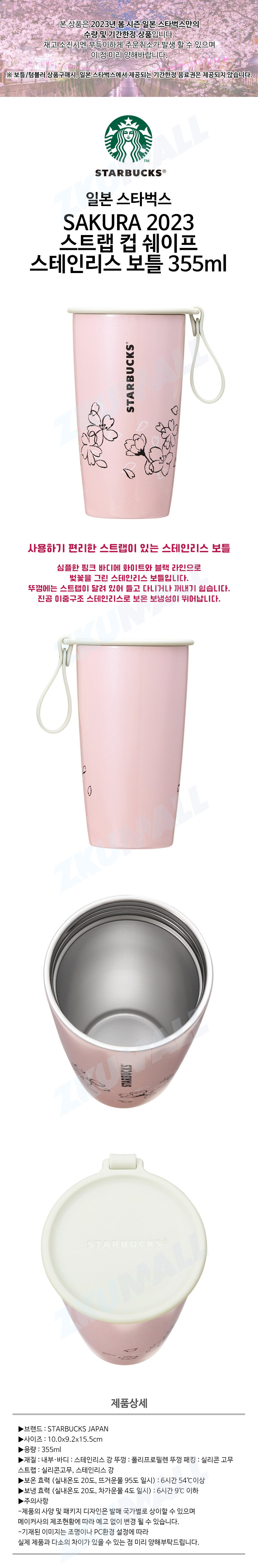 #2023년 #일본 #스타벅스# 사쿠라 벚꽃 #MD시즌# 한정판 #테일리스트에서 구경하세요. 사쿠라... 매력적인 텀블러입니다. [Starbucks] 일본 스타벅스 SAKURA 2023 스트랩 컵 쉐이프 스테인리스 보틀 355ml 심플한 핑크...
